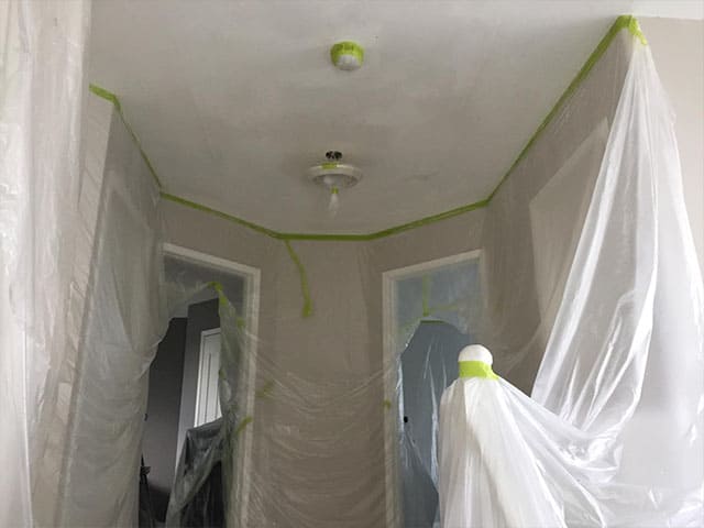 Preparation is the majority of work when it comes to painting ceilings. Before starting to paint, we ask our clients to remove the expensive and breakable items. We want everything to go smoothly. The best way to paint is by spraying.